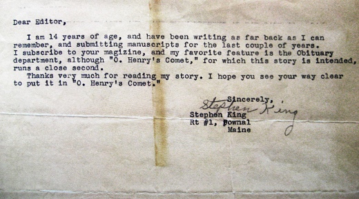 1961 წელს, 14 წლის ასაკში სტივენ კინგმა ჟურნალ “Spacemen”-ს მოთხრობა სახელწოდებით “The Killer” (მკვლელი) გაუგზავნა. მისდა სამწუხაროდ რედაქტორმა, ფორესტ აკერმანმა, მისი დაბეჭდვა საჭიროდ არ ჩათვალა. საინტერესოა, რომ მოგვიანებით აკერმანმა იგივე მოთხრობის დაბეჭდვა მაინც გადაწყვიტა, თუმცა ეს 33 წლის შემდეგ მოხდა, როდესაც ის სხვა ჟურნალის, “Famous Monsters of Filmand” (კინოსამყაროს მონსტრები) რედაქტორი იყო. ამ დროს სტივენ კინგი უკვე ძალიან პოპულარული ავტორი გახლდათ.